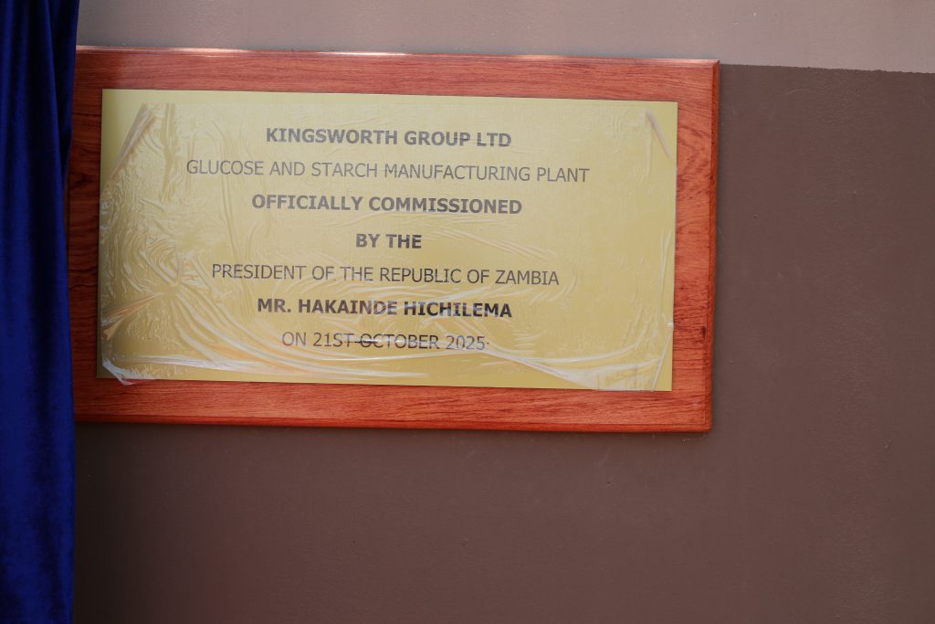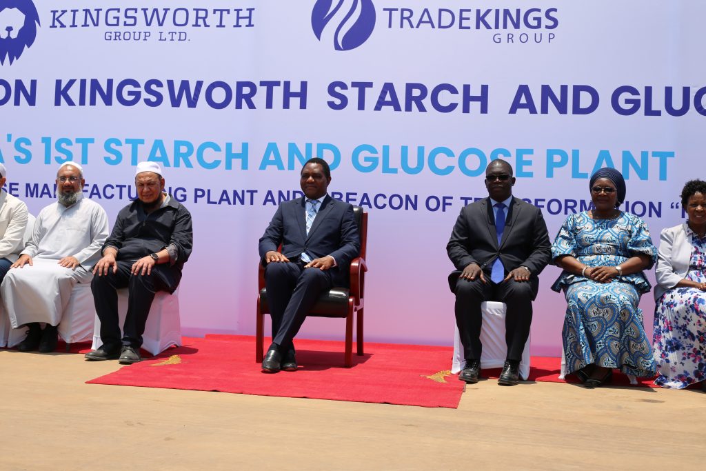 President Hakainde Hichilema has commissioned Zambia’s first glucose and starch manufacturing plant, built by Trade Kings Group under Kingsworth Group Limited in the LSMFEZ. The $110 million investment will: