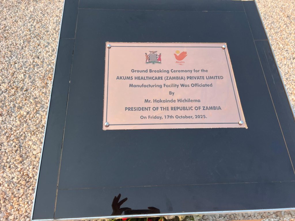 It was a historic moment as the Zambia Medicines and Medical Supplies Agency (ZAMMSA) and Akums Drugs & Pharmaceuticals Ltd of India held a groundbreaking ceremony for their soon to come state-of-the-art pharmaceutical manufacturing facility within the Lusaka South Multi-Facility Economic Zone (LS-MFEZ)